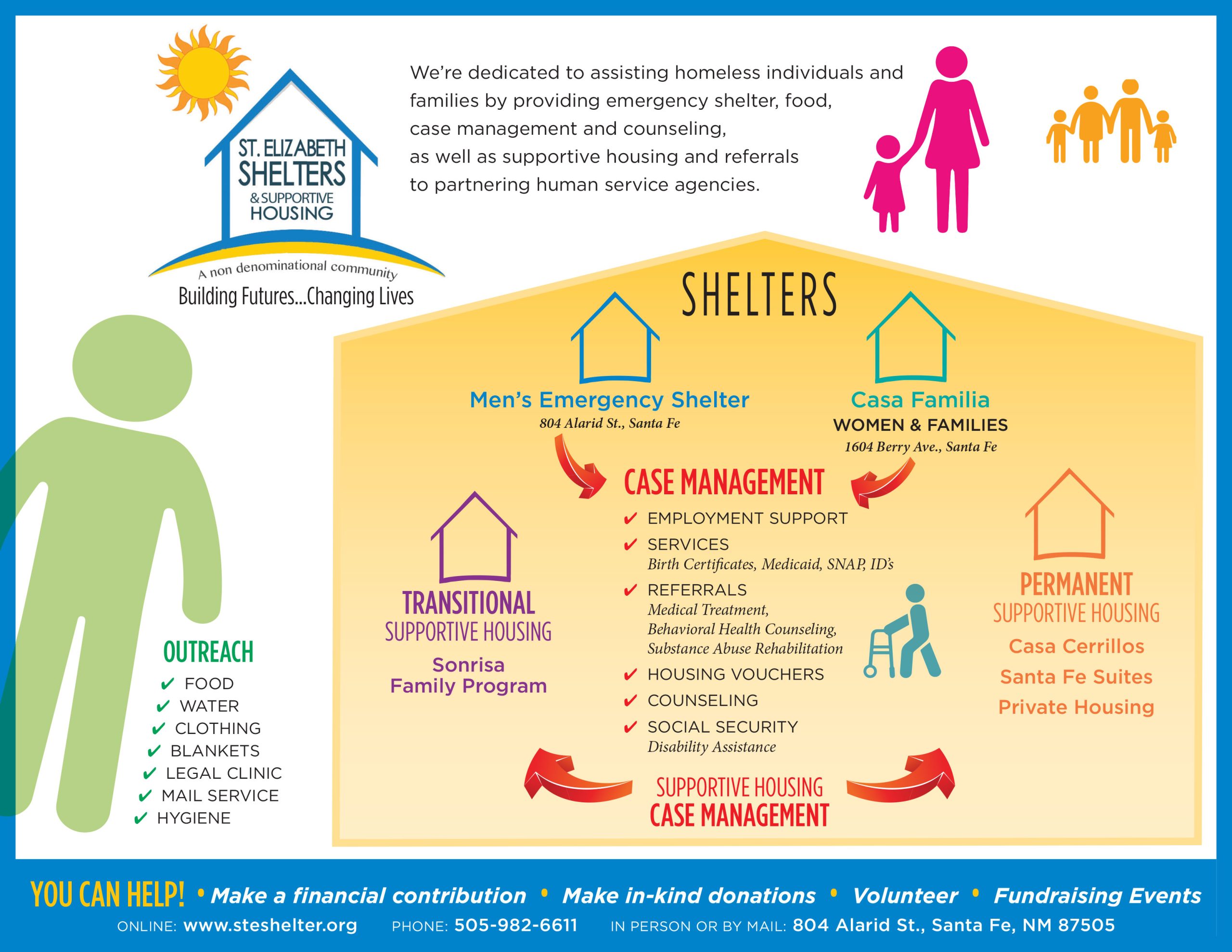 St. Elizabeth Shelter is dedicated to assisting homeless individuals and families by providing emergency shelter, food, case management, counseling, supportive housing and referrals to partnering human-service agencies. St. Elizabeth Shelter’s ultimate goal is to end the cycle of homelessness.